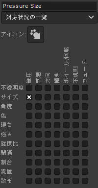ペンタブレットを使用している場合は、最初から用意されている動的特性 "Pressure Size" を使うのがいいでしょう。