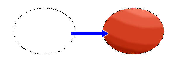 上図のように楕円の形状に選択します。 この選択範囲の内側をトマト色に塗っていきます。